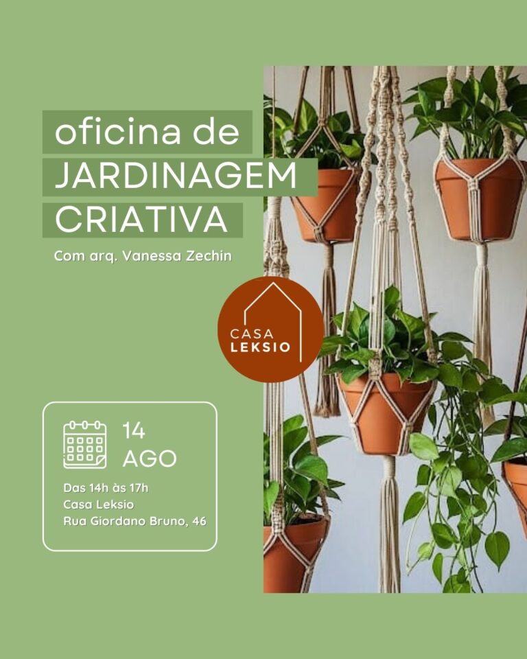 Nessa tarde especial, a arquiteta Vanessa Zechin vai ensinar você a plantar e cuidar de espécies em vasos e confeccionar o hanger, um cordão de macramê pra decorar e fixar suas plantas no teu quarto/trabalho/cantinho. E o mais legal é que você vai escolher as plantas fazendo um contato sensorial com pra sentir a energia que mais se afiniza contigo nesse momento, com a ajuda do Tarot da Fitoenergética! O material é todo fornecido na oficina, daí você já sai com um lindo presente pra ti ou pra tocar alguém!